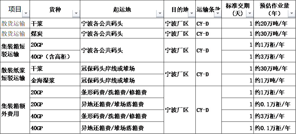 业务范围为宁波亚洲浆纸业原物料短驳运输:宁波各公共码头至工厂原物料仓库或堆场汽运。